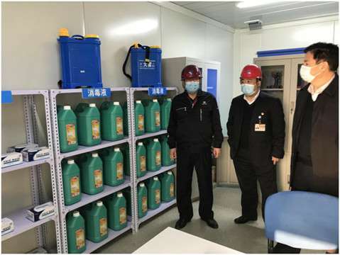 调研中,陈董事长走到工地项目部入口处,亲自进行红外测温仪测量体温,详细填写健康情况表后进入项目部内。他指出,项目部要从疫情防控细节入手,完善登记备案等各项制度,及时上报有关信息,加强员工防护,严格消毒消杀工作,努力营造安全放心的工作环境。